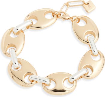 Bring powerful shine and texture to your wrist with this mixed metal bracelet that showcases puffy mariner links.