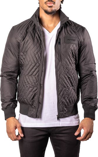 Zigzag quilting lends warmth and modern texture to a nylon bomber jacket reimagined by the innovative label that uses mathematical models in their designs.