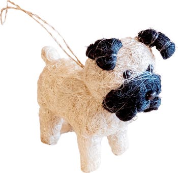 Handwoven by artisans from natural coconut coir, this whimsical ornament brings rustic paw-sonality to any dog lover's decor.