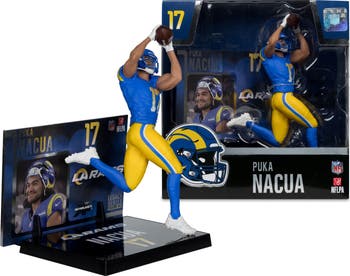 Puka Nacua (Los Angeles Rams) NFL 7" Figure McFarlane. Puka Nacua is a wide receiver for the Los Angeles Rams, drafted in the fifth round of the 2023 NFL Draft. In his rookie season, he set a record with 15 catches in a game and finished with 105 receptions, 1,381 yards, and 10 touchdowns. Nacua earned Pro Bowl and Second-Team All-Pro honors for his standout performance. Officially Licensed by the NFL and NFLPA.