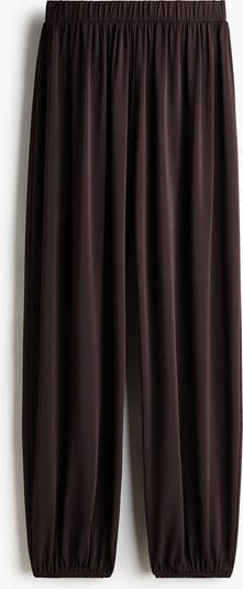 Loose-fit trousers in stretch jersey with a slight sheen. Covered elastication at the waist and balloon legs with narrow elastication at the hems.