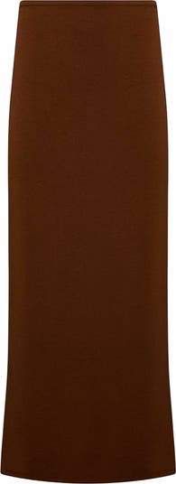 This fitted pull-on skirt is made from soft jersey with a midi hem and stretch waist that can be worn high- or low-waisted. Elastic waist Pull-on Midi length Fitted 60% Cotton 34% Rayon 6% Spandex Hand wash in cool water. Do not bleach. Do not tumble dry. Hang dry. Do not iron.