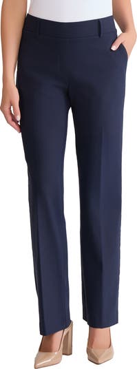 Polished and comfortable, these straight-leg pants are made a from stretchy blend with polished creases at the front so they always look neatly pressed.