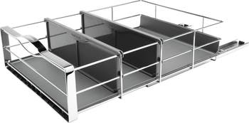 Helps you reduce clutter and utilize all your hard-to-reach cabinet space with ease. The cabinet frame is constructed from heavy-gauge steel that holds up to 20 lb. A durable, removable drip guard protects your cabinets from messy spills and leaks. Installs easily with pre-aligned commercial-grade ball-bearing tracks.