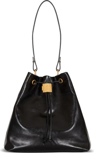 Pulse calfskin leather backpack Carry in the hand or wear on the shoulder Adjustable, detachable straps in leather and chains Detachable leather handle Drawstring fastening with embossed PB closure Gold hardware Dimensions: 11 x 23 x 23 cm Main material: 100% calfskin Made in Italy Item: GN1GE036LMTE