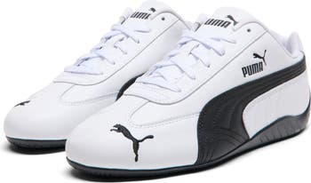 A low, streamlined profile revs up the energy of a leather-clad sneaker designed with an iconic racer silhouette and a heel-wrapping sole keeping the pedal to the floor. Aerodynamic stitching and an embroidered PUMA Cat on the toe maintain the fan-favorite pace.