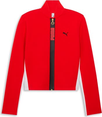 Inspired by heritage track jackets, this sporty slim-fit option features logo rubber tape at the zipper with a goldtone cat logo pull.