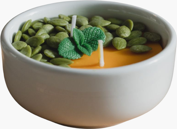 This candle features a delightful pumpkin scent, perfect for creating a cozy atmosphere during the fall season.