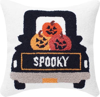 Pumpkin Truck Happy Halloween Hooked Throw Pillow, 3" x 18"