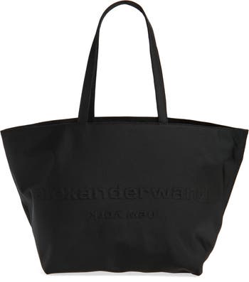 Raised logo lettering adds an unmistakable signature to this nylon canvas tote designed in an ultraroom silhouette topped with long handles.