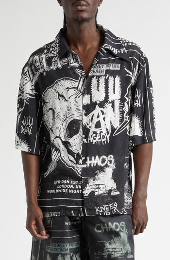 LU'U DAN Punk Flyer Print Camp Shirt, Alternate, color, Punk Flyer