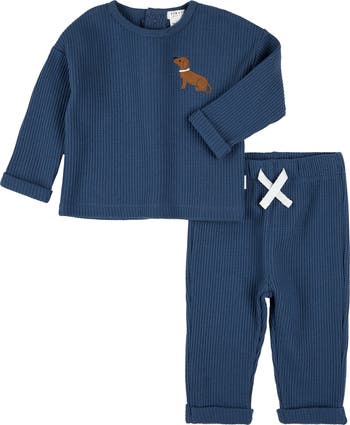 Adorable embroidery of a patiently sitting dachshund amps up the sweetness of this cozy thermal set featuring a long-sleeved top and coordinating pants.