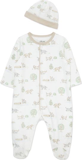 Between your adorable babe and these delightful pups, this cotton footie and hat set nears cuteness overload.