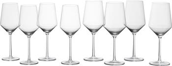 This Pure glassware set includes four all-purpose red wine glasses and four white wine glasses designed with a dramatically angled bowl and dignified stem. Schott Zwiesel Crystal Glass is made from a formula that replaces lead with zirconium and titanium for brilliance and strength, and while it is unrivaled for the elegance of its design it is also dishwasher safe.