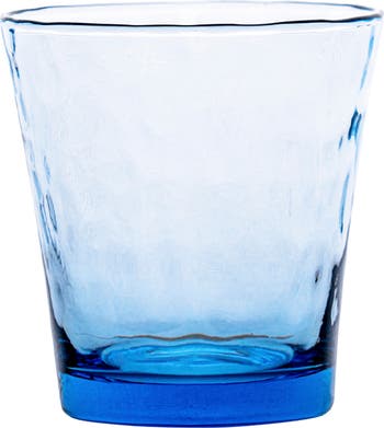 Sip in style with a sturdy, lead-free glass tumbler dappled like water in the sunlight.