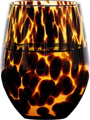 Inspired by the rich hues and speckled textures of tortoiseshell, this stemless wine glass brings a bit of artisty to your tabletop spread.