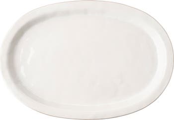 This versatile platter is crafted in Portugal and given a creamy white glaze that's thinned along the rim for a unique, handcrafted aesthetic.
