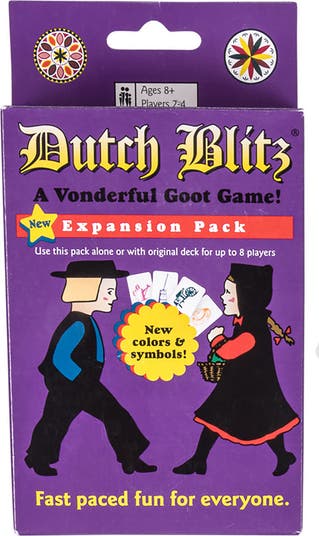 - 4 NEW CARD COLORS: The new enhanced Purple Dutch Blitz Expansion Pack adds 4 vibrant new colors and 4 quaint new symbols to make each player’s deck stand out when playing with more than 4 friends using the Classic Green or Blue Expansion decks.