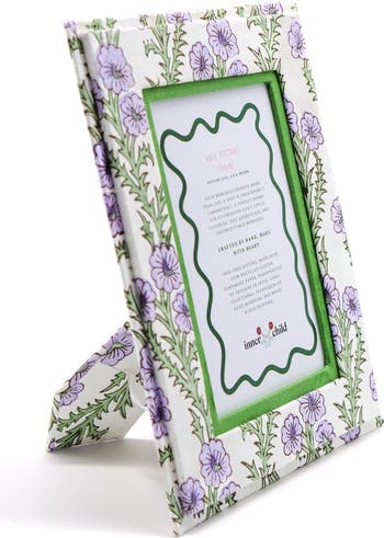 Your memories deserve more than just a spot in your phone's camera roll. A perfect frame for celebrating life's little victories, epic adventures, and unforgettable memories. Handcrafted by artisans in India, using traditional techniques of hand marbling Tree-free gifting. Made with 100% recycled cotton handmade paper Dimensions: 7.25" x 6" inches, fits a 4" x 6" inch photograph There is a wall hanging attachment on the back of this frame for dual use