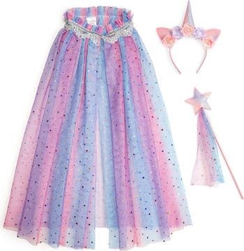 - Includes: 1 Cape, 1 Wand, 1 Unicorn Headband.