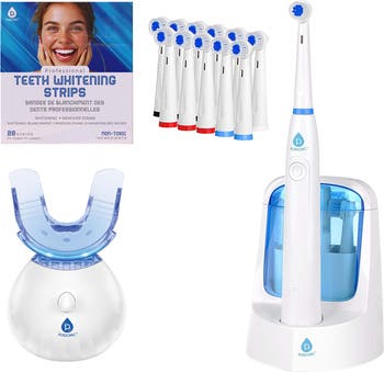- What’s Included: Advanced LED Teeth Whitening Solution: Fast LED Light Acceleration: Reduces whitening time by up to 10x compared to traditional methods. Visible Results in Just 30 Minutes: Brighten your smile in a single session. Removes Stubborn Stains: Effectively tackles discoloration from coffee, wine, tea, and smoking. Gentle on Enamel: Safe for long-term use without damaging your teeth. Easy Application: Simple, mess-free process for professional-grade whitening at home. Professional Teeth Whitening Strips: Powerful Whitening: Delivers 4x better results than standard products. Peroxide-Free & Non-Toxic: Gentle on sensitive teeth while ensuring effective whitening. Stain Removal: Erases years of stains from everyday foods and drinks. Convenient Design: Stays securely in place for whitening on the go. Pursonic Rechargeable Electric Toothbrush with UV Sanitizing Function: UV Sanitizer: Eliminates up to 99.9% of germs on brush heads for optimal hygiene. Oscillating Cleaning Technology: 8,800 oscillations per minute remove more plaque than manual brushing. Three Cleaning Modes: Powerful cleaning, gentle soft cleaning, and soothing massage modes for complete oral care. Built-In Timer: Ensures even cleaning with a 30-second interval alert system. Complete Set: Includes 12 brush heads, 2 tongue cleaners, 2 interdental brush heads, and 2 floss holders for an all-in-one dental care solution. Key Benefits of the Bundle: Whiten and Brighten: Achieve a radiant smile with advanced whitening solutions and professional strips. Deep Cleaning Power: The electric toothbrush removes plaque and bacteria while sanitizing brush heads to keep them germ-free. Convenient and Cost-Effective: Enjoy professional dental care at home without the hefty price tag. Gentle on Teeth and Gums: All products are designed to be effective yet safe, even for sensitive teeth. Why Choose the Pursonic Advanced Smile Care Bundle? This all-in-one bundle is ideal for anyone looking to improve their smile and maintain oral hygiene effortlessly. The combination of whitening solutions and a powerful electric toothbrush ensures a complete, professional-grade experience at home. How to Use: Start with the Advanced LED Teeth Whitening Solution: Apply the whitening gel, activate the LED light, and leave for 30 minutes. Follow Up with Professional Whitening Strips: Apply to teeth as directed, leave on, and remove for a brighter, whiter smile. Daily Care with the Electric Toothbrush: Use the toothbrush in your preferred cleaning mode for a thorough, hygienic clean. Elevate Your Smile Today Say goodbye to stains, dullness, and plaque! With the Pursonic Advanced Smile Care Bundle, you’ll enjoy a brighter smile and a healthier mouth. Order now and experience the confidence of a radiant smile!