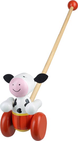 - WOODEN PUSH ALONG COMPANION: Make friends with this beautiful wooden Cow farm animal push along toy. Perfect to encourage those first steps! Sure to become a toybox treasure. Push-pull-portable play!