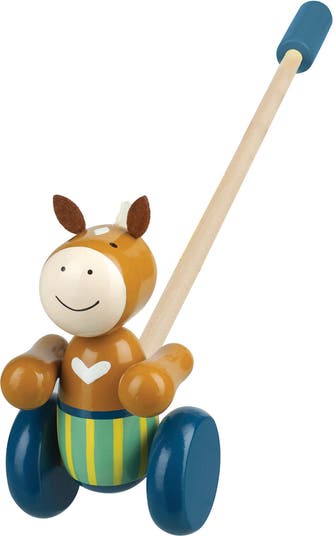 - WOODEN PUSH ALONG COMPANION: Make friends with this beautiful wooden Pony push along toy. Perfect to encourage those first steps! Sure to become a toybox treasure. Push-pull-portable play!