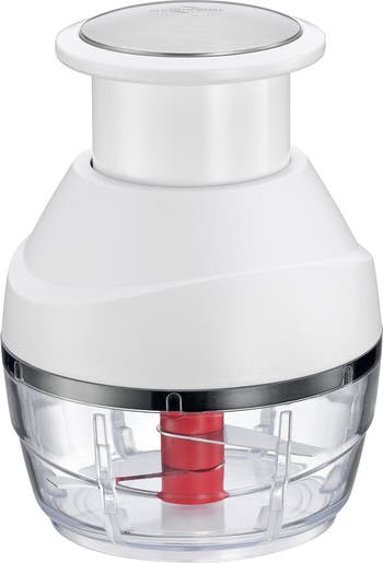 The Kuchenprofi Push Fruit and Vegetable Multi Chopper makes chopping your favorite fruits, vegetables, and nuts simple and neat. This compact tool, with a 3.4-inch diameter, offers quick and easy chopping for fruits and vegetables, enhancing your kitchen efficiency.