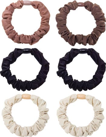 Elevate your everyday hair routine with this chic and versatile scrunchie set, designed to blend style with comfort. Each piece features softly ruched fabric wrapped around a durable elastic, finished with a sleek center bead for a subtle, polished detail. Perfect for elevating simple ponytails, effortless buns, or braided styles. This curated neutral mix pairs beautifully with any outfit, making it an easy go-to for both casual days and more put-together looks.