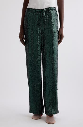 The iconoclastic Belgian designer's captivating color/texture fusion lives on in these relaxed straight-leg pants glammed up with scores of twinkling sequins.
