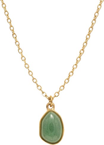 This dainty gemstone necklace with a pop of light green color features a skinny adjustable chain plated with gold and an adventurine pendant. It will be your new everyday necklace no matter the outfit.