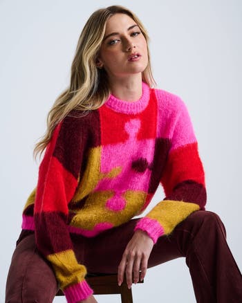 From our Made In Italy collection, Puzzled features a colorful puzzle-inspired intarsia on a relaxed crewneck silhouette. Made from a brushed mohair blend, it’s soft, breathable, and full of personality.