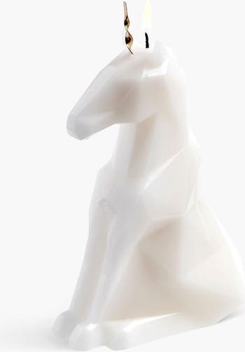 Einar is not your ordinary unicorn. Light the wick to reveal a glowing metallic skeleton hidden within, transforming this playful candle into a bold statement piece. Designed in Iceland and packaged for gifting, it’s a whimsical twist on candlelight. White is scented with mandarin, vanilla and cinnamon. The hot pink and lilac versions are unscented.