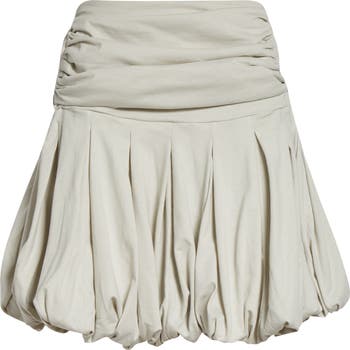 Soft godets and a bubble hem amp up the volume of this gathered cotton-jersey miniskirt—a signature silhouette for third-generation couturier Cynthia Merhej.