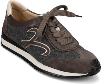 Panels of flannel and soft suede shape the sporty silhouette of this low-profile sneaker set on an ultrapadded insole for comfort under every step.
