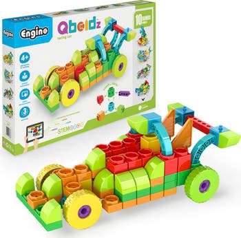 ENGINO - QBOIDZ RACING CAR - 10 DIFFERENT BONUS MODELS. QBOIDZ "Racing Car" is a construction set that lets you build a racing car model with colorful blocks, as well as 10 bonus models. With its sleek and sporty design and easy-to-use blocks, this set provides a fun and engaging way for kids to get interested about cars and racing. ADDITIONAL ACTIVITIES: Children can enjoy coloring pages, number recognition activities, and engaging tasks that make learning both fun and hands-on. Each model comes with fascinating educational facts, turning every build into a discovery experience that connects play with real-world knowledge. Build, Play, Learn, Invent. Traditional building by stacking bricks. Enhanced creativity by connecting bricks with rods in any direction! Increase dexterity and perception of 3D space. Fully compatible with the Engino Toy System. 3D MODEL VIEWER: Compatible with the Engino app to view and interact with 3D instructions of designs. Printed instructions also included. THE QBOIDZ SYSTEM combines the award-winning snap-fit connectivity of Engino system with the effortless building feature of stackable blocks! The system encourages preschool children to develop their cognitive, social and motor skills through fun and creative play. The Qboidz development is based on the latest pedagogical principles of STEM (Science, Technology, Engineering and Mathematics), aiming to provide both girls and boys with the necessary experience, skills and knowledge to cope with the technological advancements of the future.