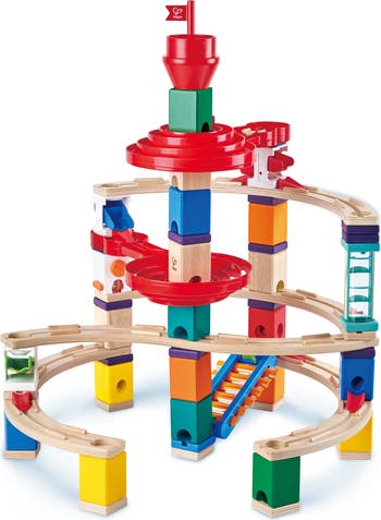 Your child will have endless fun creating a marble run with this colorful set. A mix of different pieces allow you to create horizontal and vertical paths with lots of twists and turns. See-saw pieces will randomly send marble left or right, while a other pieces tip the marbles sideways and change their direction. The mix of 79 pieces provide endless possibilities for reconfiguring the fun marble run.