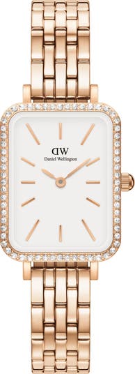 Sparkling crystals encircle the rectangular bezel and highlight the clean dial on a slender timepiece powered by Japanese quartz movement and set on a two-tone bracelet.