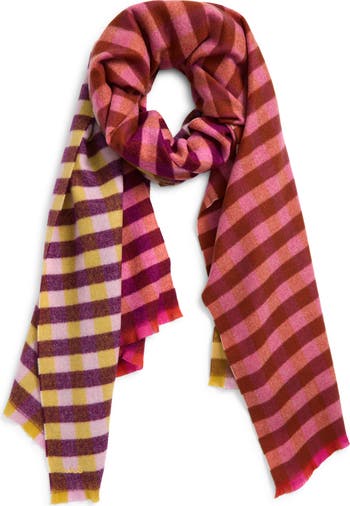 Color-morphing checks brighten this generously sized scarf that envelops you in icozy wool-kissed warmth.