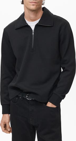 Update your daily rotation with this quarter-zip sweatshirt framed by a crisp spread collar and shaped for understated modern appeal.
