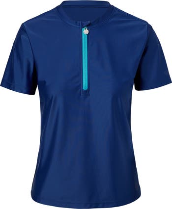 Combining comfort, performance, and superior sun protection, our women's quarter zip crew swim shirt, certified UPF 50+, is ideal for all your outdoor beach activities.