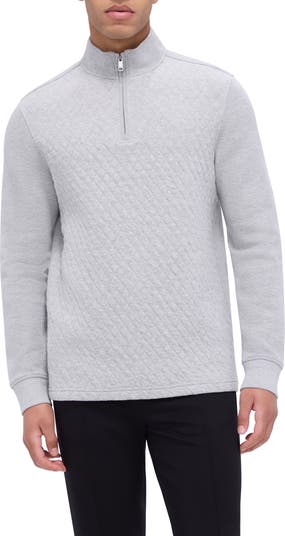 Lightweight and layerable, this textured cotton-blend pullover features a low collar and short zipper to help you get the perfect fit.