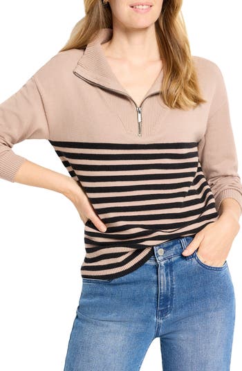 Contrast stripes play up the preppy style of this quarter-zip sweater that's perfect for layering.