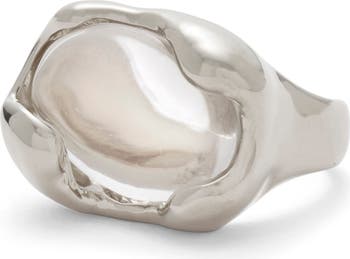 A warm quartz stone glows from the center of an undulate band with an intriguing organic texture.