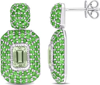 These luxurious drop earrings feature green quartz and tsavorite gemstones, set in an elegant octagon cluster design in 14k white gold. The vibrant green tones evoke a sense of growth and renewal, perfectly framed by the sleek white gold setting. Ideal for those who cherish unique, color-rich jewelry, these earrings are sure to make a statement.
