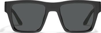 A bold, square silhouette shapes these full-coverage sunglasses fitted with lightweight CR-39 lenses and subtle logos at the temples.