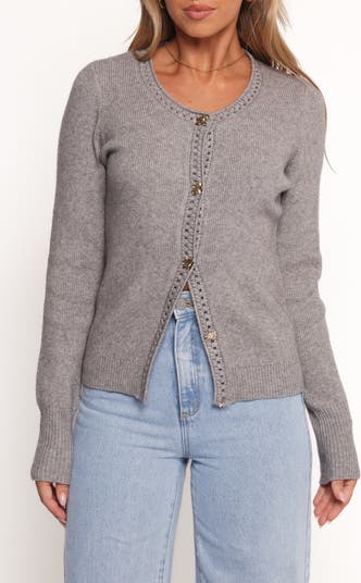 Pinched, gleaming buttons add a flash of brilliance to this cardigan knit with openwork details from supersoft yarns that make it an ideal choice whether you layer it or let it star solo in your look.