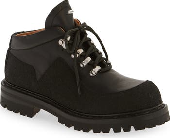 Born in Italian leather and built with mountaineer intent, this boot channels hiker heritage through a midheight shaft that angles and cushions at the ankle for all-day comfort on the move. A Kevlar® wrap shields the entire base for hard-wearing resilience, while metal eyelets and speed hooks lock down the laces with crisp precision. Underfoot, a Vibram® lugged sole grips the ground and a padded cuff rounds out the supportive build.