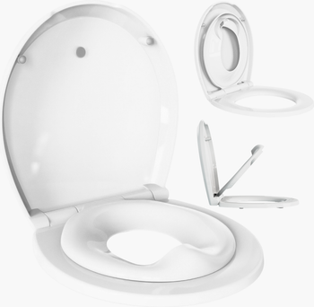 Introducing the Quick Flip Toilet Seat, the only 2-in-1 toilet seat with a built-in splash guard. It's easy and efficient for everyone, making potty training a breeze.