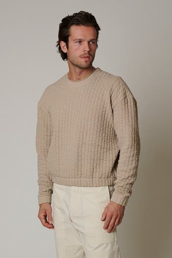 Textured warmth meets timeless style. The quilted crewneck adds cozy dimension to your everyday rotation.